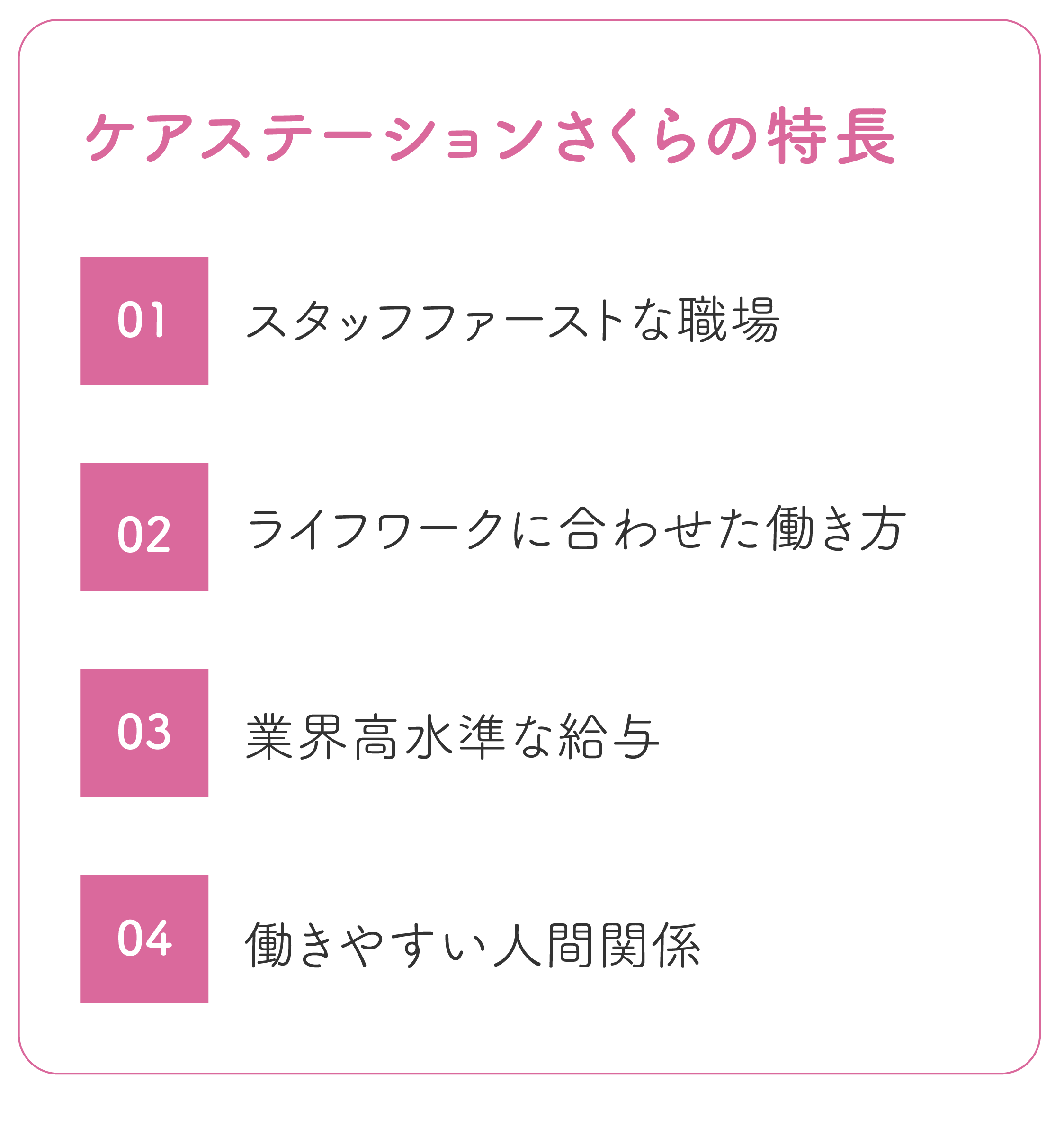 その考えや感じ方、働き方を払拭したく、ケアステーションさくらは存在します。
