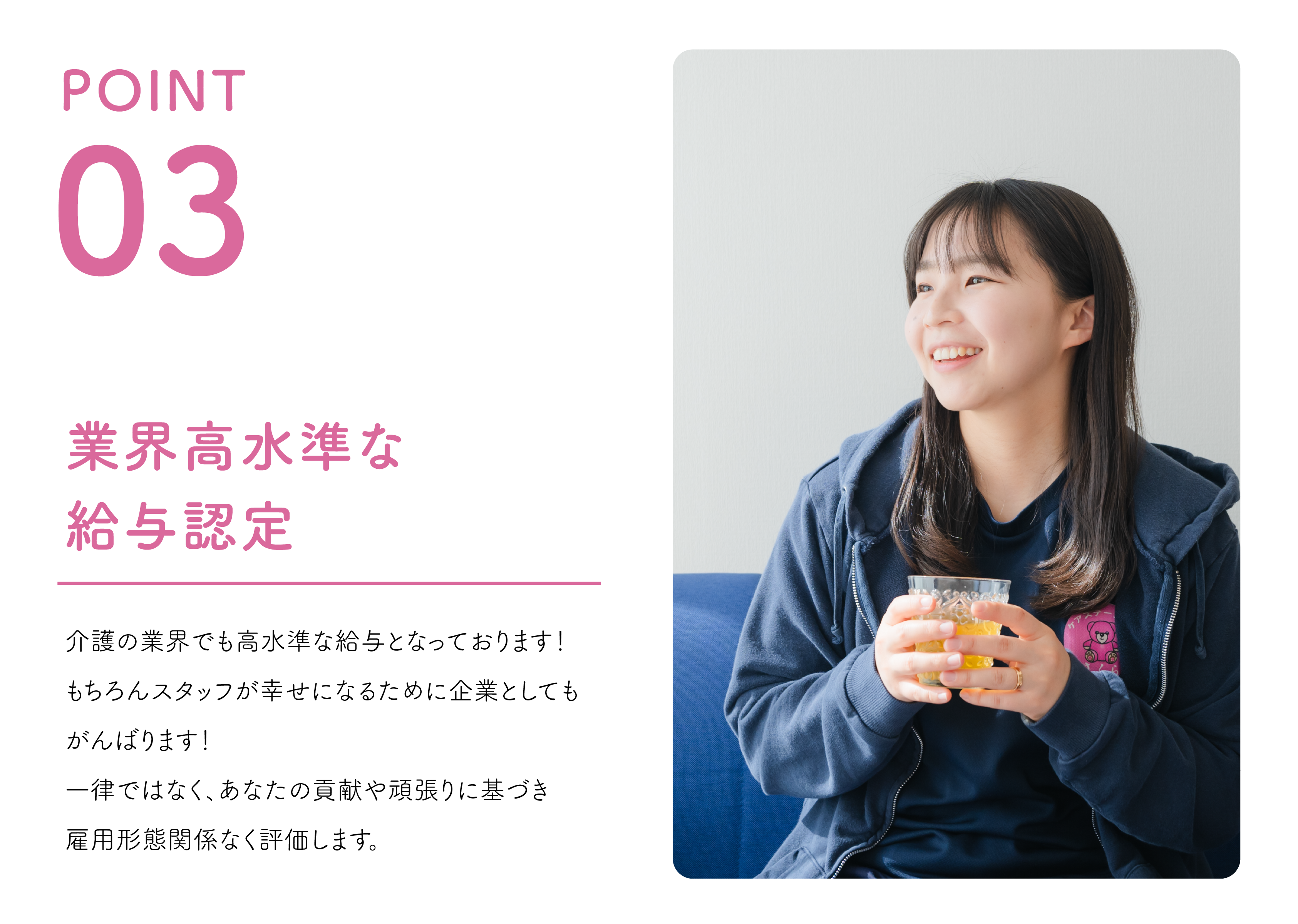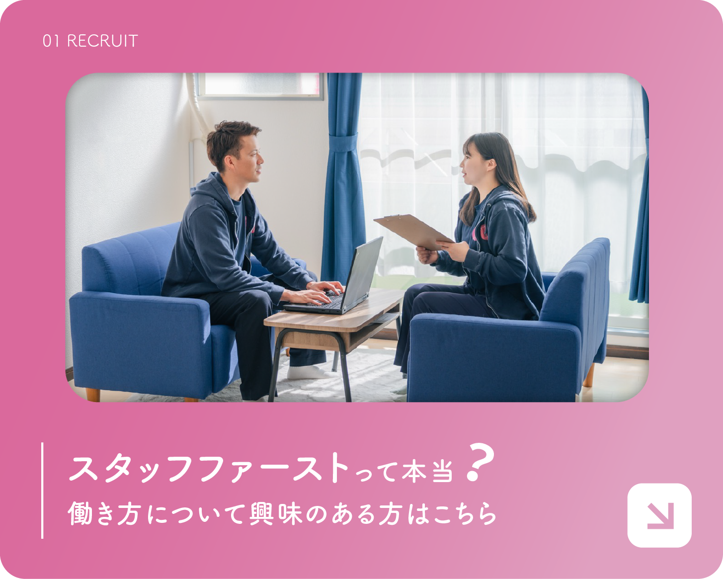 今まではサ高住で勤務していましたが、日々新しい経験ばかりで本当に充実していて、これからも社長や仲間と一緒に訪問介護を盛り上げていきます!