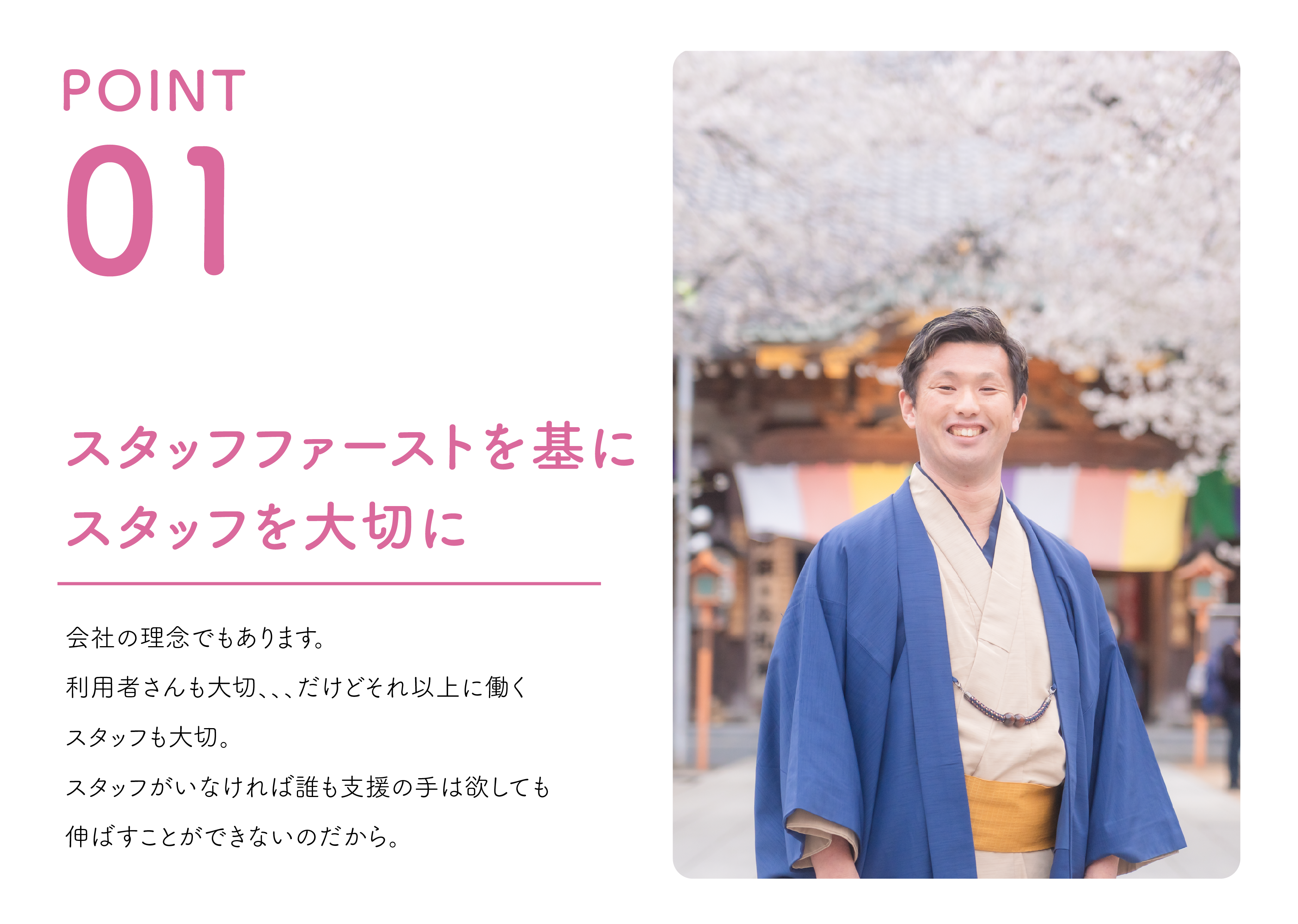利用者さん1人1人が私たちを通じて笑顔になってくださるのが最高の幸せです。
